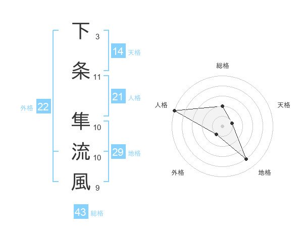 下条 隼流風さんを姓名の画数から五運を鑑定