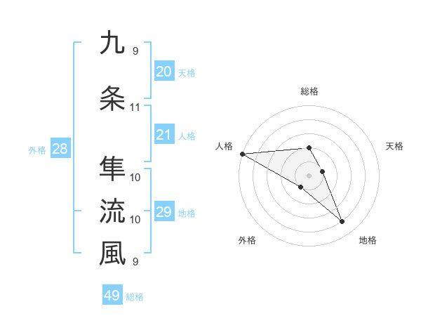 九条 隼流風さんを姓名の画数から五運を鑑定