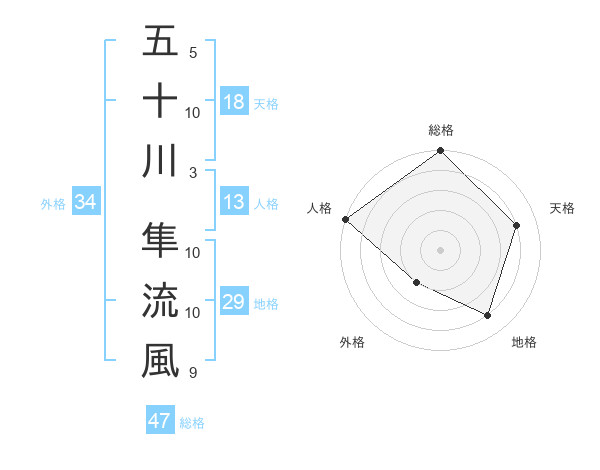 五十川 隼流風さんの総格は47画の5点!