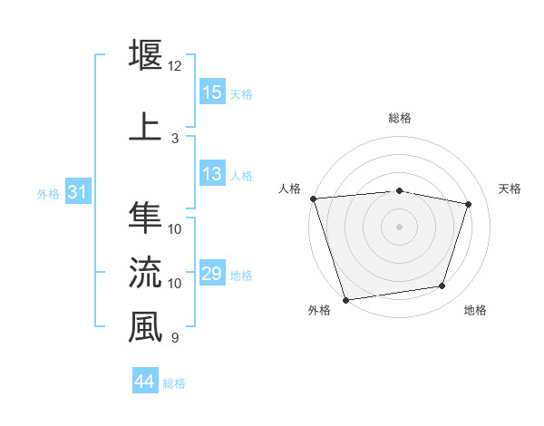 堰上 隼流風さんを姓名の画数から五運を鑑定