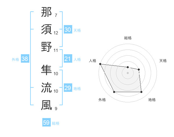 那須野 隼流風さんを姓名の画数から五運を鑑定