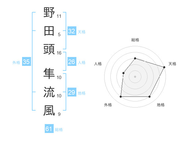 野田頭 隼流風さんを姓名の画数から五運を鑑定