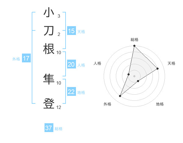 小刀根 隼登さんを姓名の画数から五運を鑑定