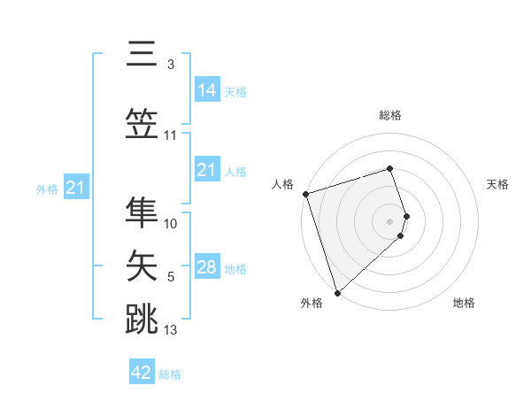 三笠 隼矢跳さんを姓名の画数から五運を鑑定