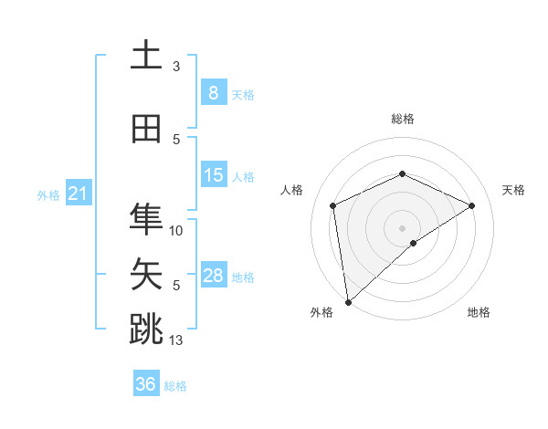 土田 隼矢跳さんを姓名の画数から五運を鑑定