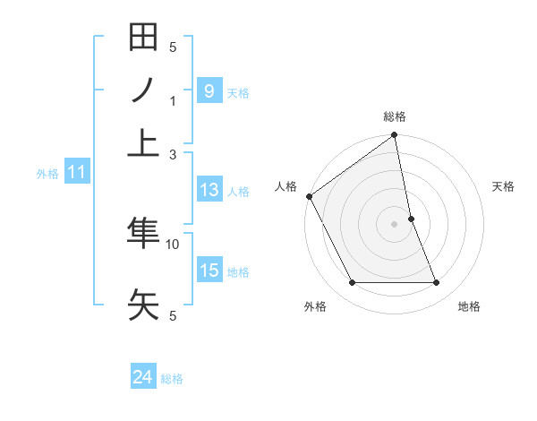 田ノ上 隼矢さんを姓名の画数から五運を鑑定