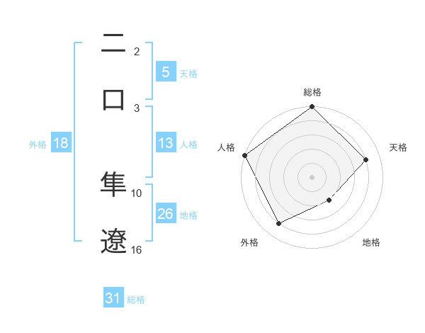 二口 隼遼さんを姓名の画数から五運を鑑定