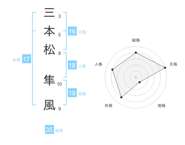 三本松 隼風さんを姓名の画数から五運を鑑定