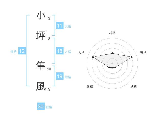 小坪 隼風さんの総格は30画の2点!