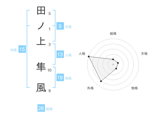 田ノ上 隼風さんを姓名の画数から五運を鑑定