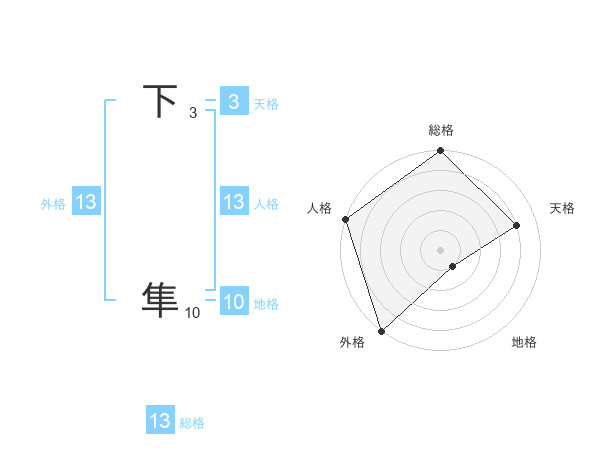 下 隼さんの外格は13画の5点!
