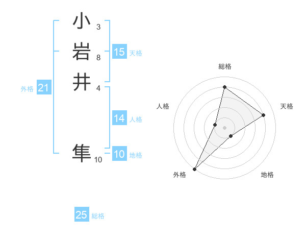 小岩井 隼さんを姓名の画数から五運を鑑定