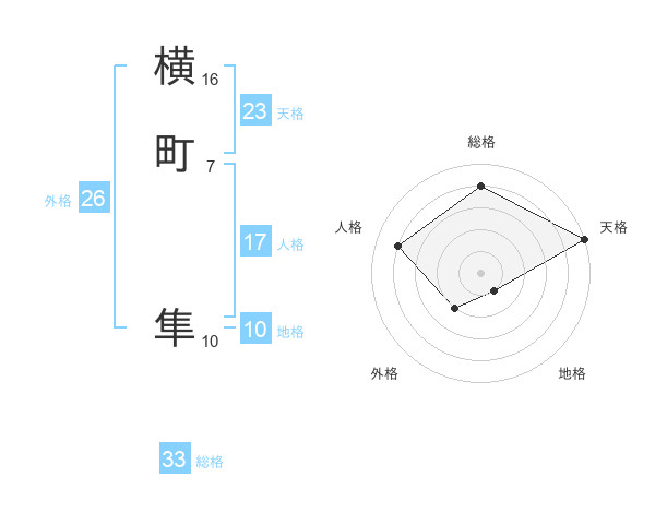 横町 隼さんの天格は23画の5点!