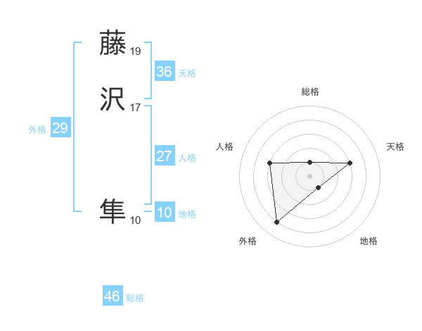 藤沢 隼さんの天格は36画の3点!