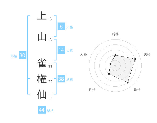 上山 雀権仙さんを姓名の画数から五運を鑑定