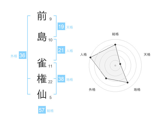 前島 雀権仙さんを姓名の画数から五運を鑑定