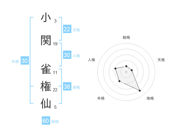 小関 雀権仙さんを姓名の画数から五運を鑑定