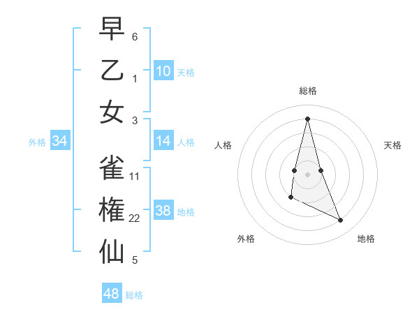早乙女 雀権仙さんの総格は48画の4点!