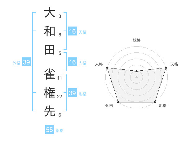 大和田 雀権先さんの天格は16画の5点!