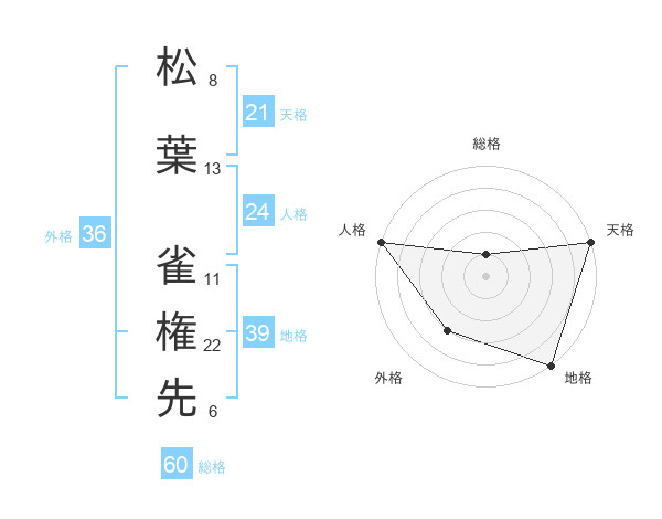 松葉 雀権先さんを姓名の画数から五運を鑑定