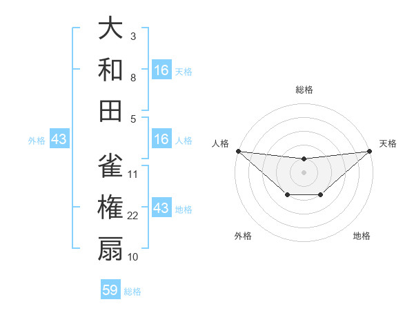大和田 雀権扇さんの天格は16画の5点!