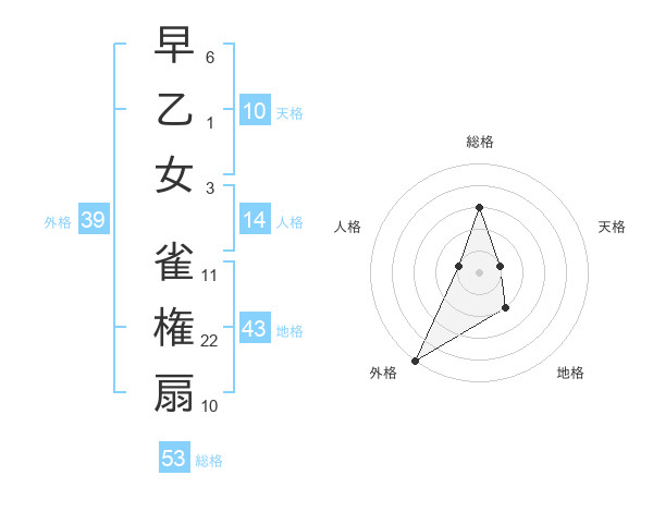 早乙女 雀権扇さんを姓名の画数から五運を鑑定