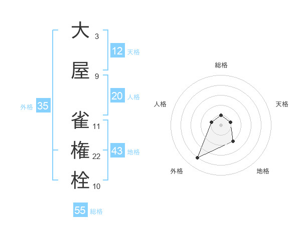 大屋 雀権栓さんの総格は55画の1点