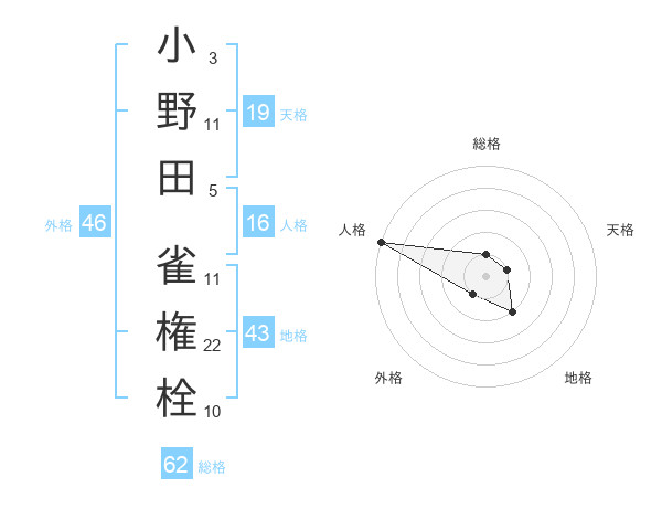 小野田 雀権栓さんを姓名の画数から五運を鑑定