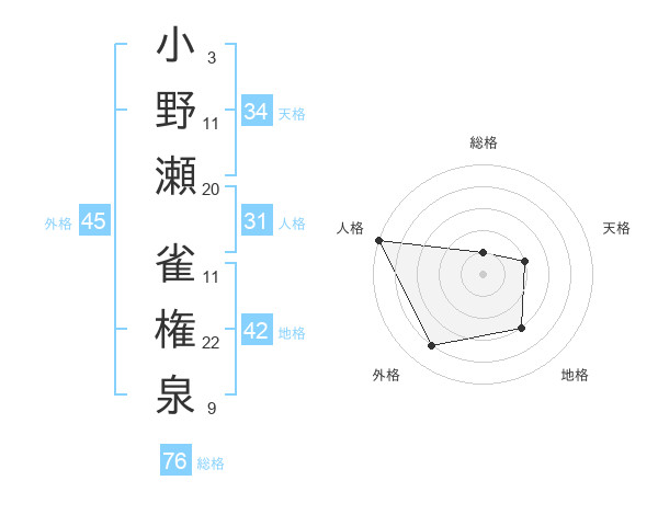 小野瀬 雀権泉さんを姓名の画数から五運を鑑定