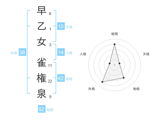早乙女 雀権泉さんを姓名の画数から五運を鑑定