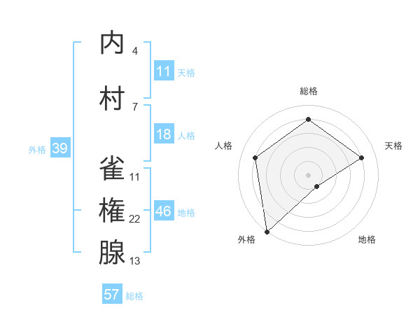 内村 雀権腺さんを姓名の画数から五運を鑑定