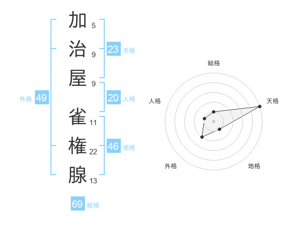 加治屋 雀権腺さんを姓名の画数から五運を鑑定