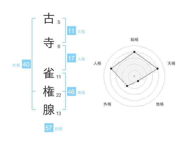 古寺 雀権腺さんを姓名の画数から五運を鑑定