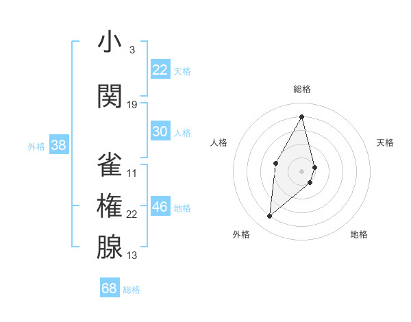 小関 雀権腺さんの総格は68画の4点!