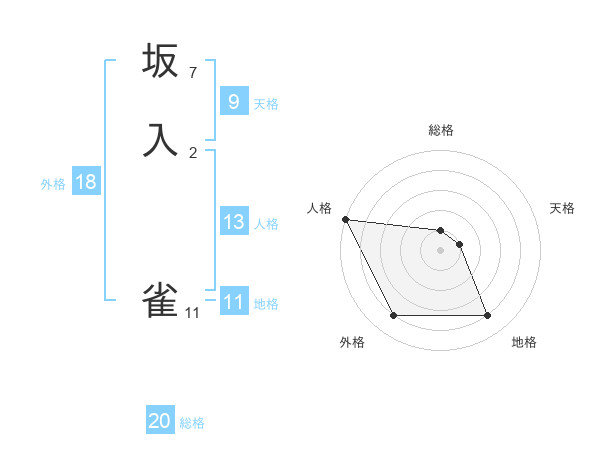 坂入 雀さんの外格は18画の4点!