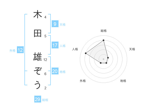 木田 雄ぞうさんを姓名の画数から五運を鑑定
