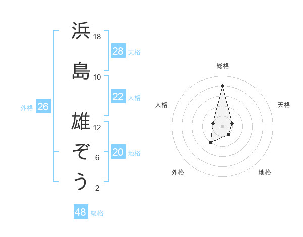 浜島 雄ぞうさんを姓名の画数から五運を鑑定