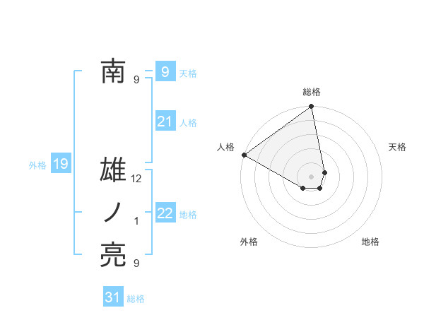 南 雄ノ亮さんの総格は31画の5点!