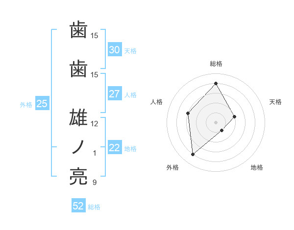 歯歯 雄ノ亮さんの総格は52画の4点!