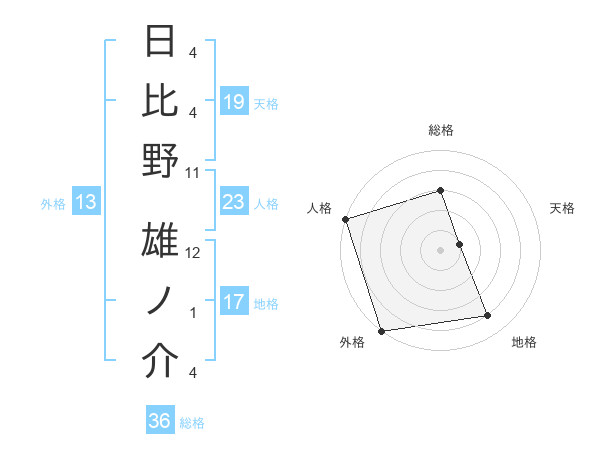 日比野 雄ノ介さんの外格は13画の5点!
