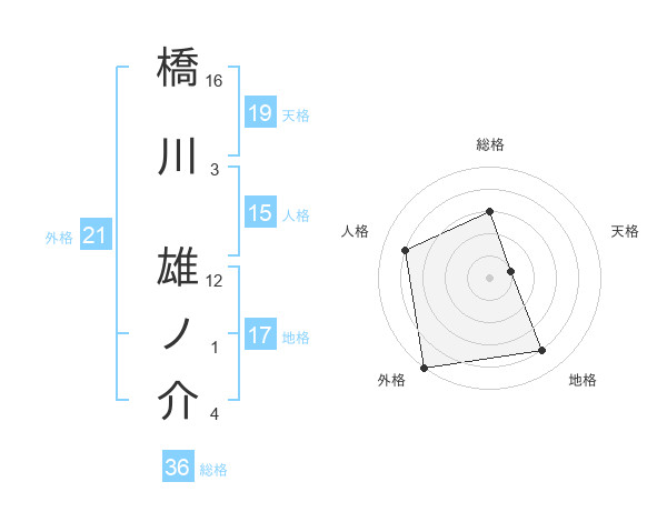 橋川 雄ノ介さんを姓名の画数から五運を鑑定