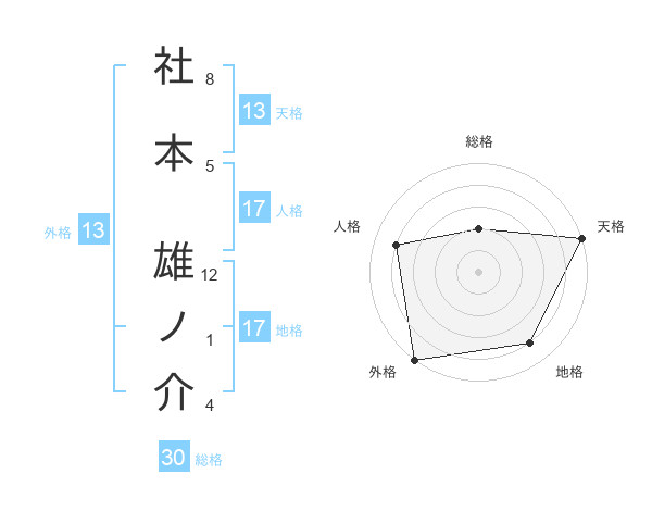 社本 雄ノ介さんを姓名の画数から五運を鑑定