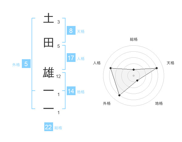 土田 雄一一さんを姓名の画数から五運を鑑定