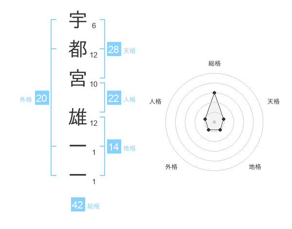 宇都宮 雄一一さんを姓名の画数から五運を鑑定