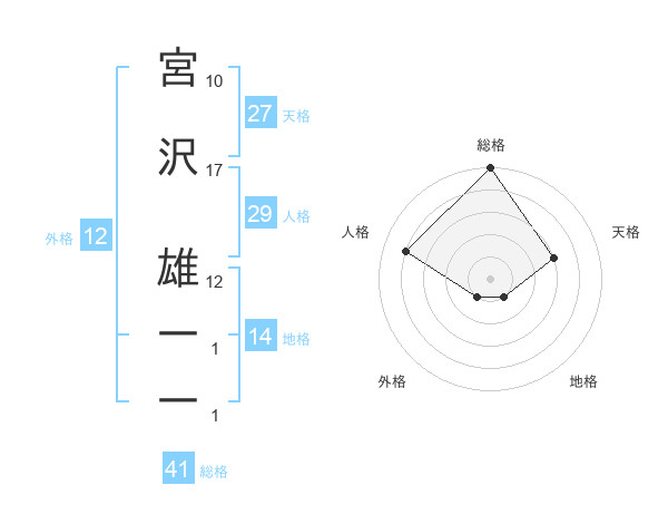 宮沢 雄一一さんを姓名の画数から五運を鑑定