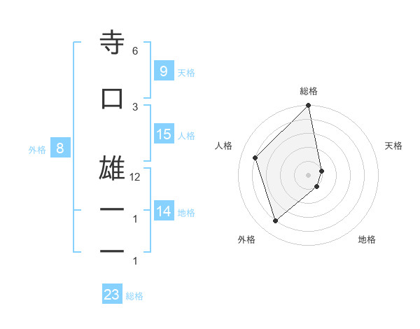 寺口 雄一一さんの総格は23画の5点!