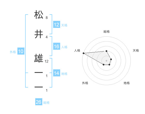 松井 雄一一さんを姓名の画数から五運を鑑定