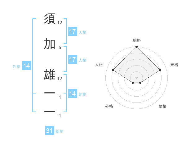 須加 雄一一さんの総格は31画の5点!
