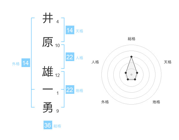 井原 雄一勇さんの地格は22画の1点!