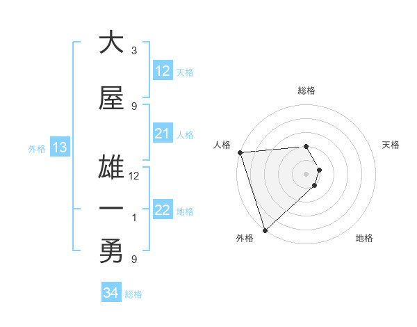 大屋 雄一勇さんを姓名の画数から五運を鑑定